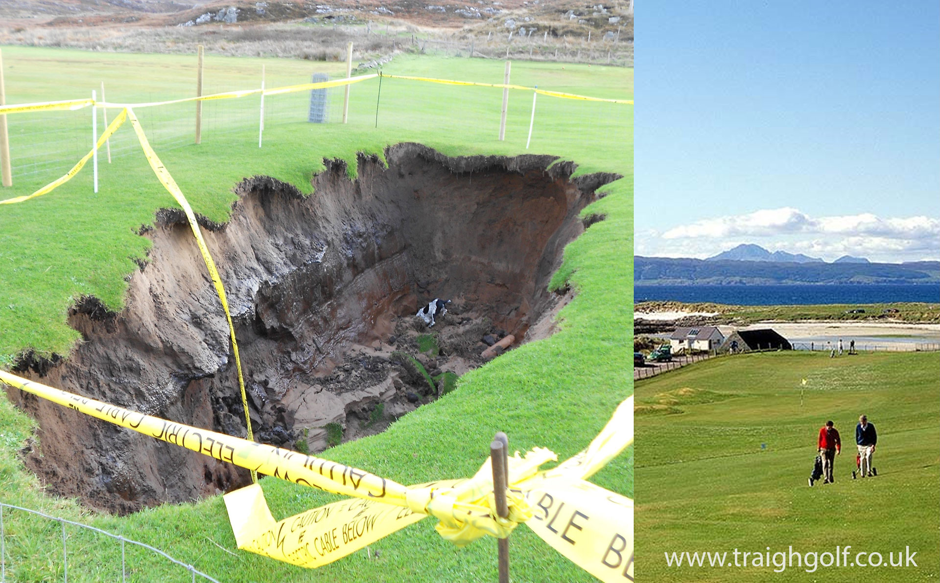 Roddie Burgess, Captain of Traigh Golf Club says, "I am absolutely delighted that we are back in business so quickly. The damage to the course seemed devastating at the time, and I can think of easier ways to get all the publicity that we received earlier in the year. But we felt that it would be appropriate to preserve the memory of the sinkhole – though we certainly don't want to see it back again! The Open is always a special day in our calendar and this will be particularly so."