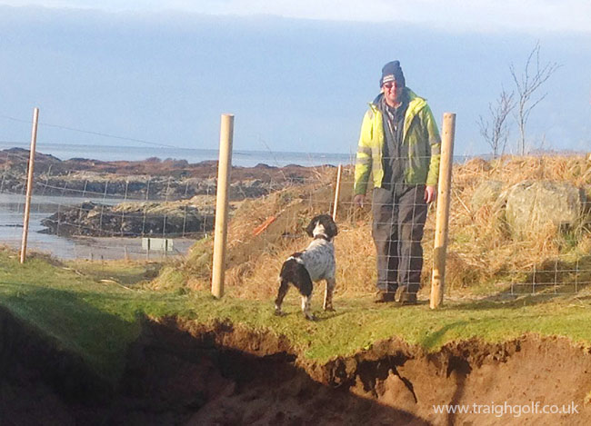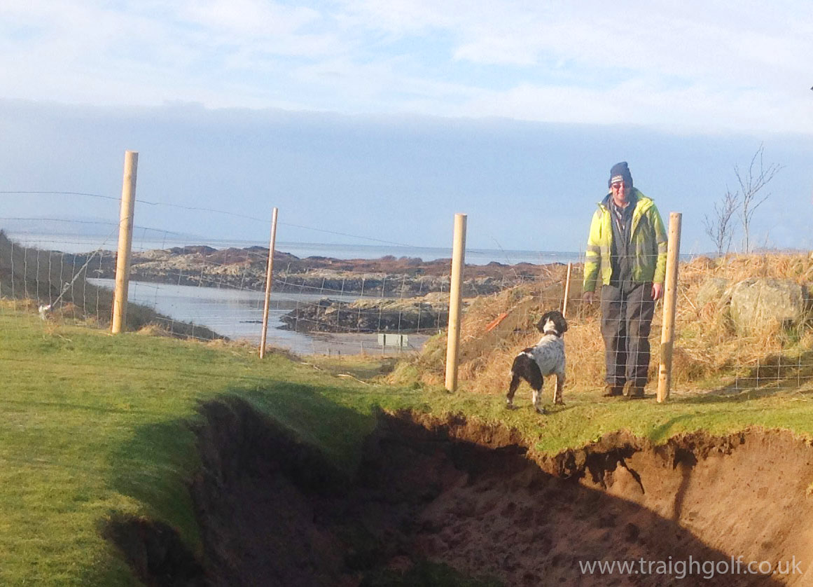 David Shaw Stewart, one of the owners of the course, added that "We are hugely grateful to the local firm Corrie Construction, with the able assistance of our own greenkeeper Gavin Johnston, for their sterling work in repairing all the damage. They were working through rain and snow in the middle of February and they certainly had to face some tricky technical problems. They threaded a new plastic pipe through the remains of the old metal pipe laid in the 1970s but they had to be very careful not to damage the high pressure water mains pipe that runs through the golf course. It cost us over £10,000 but as we said at the time we are passionate about the course and determined to keep it going."